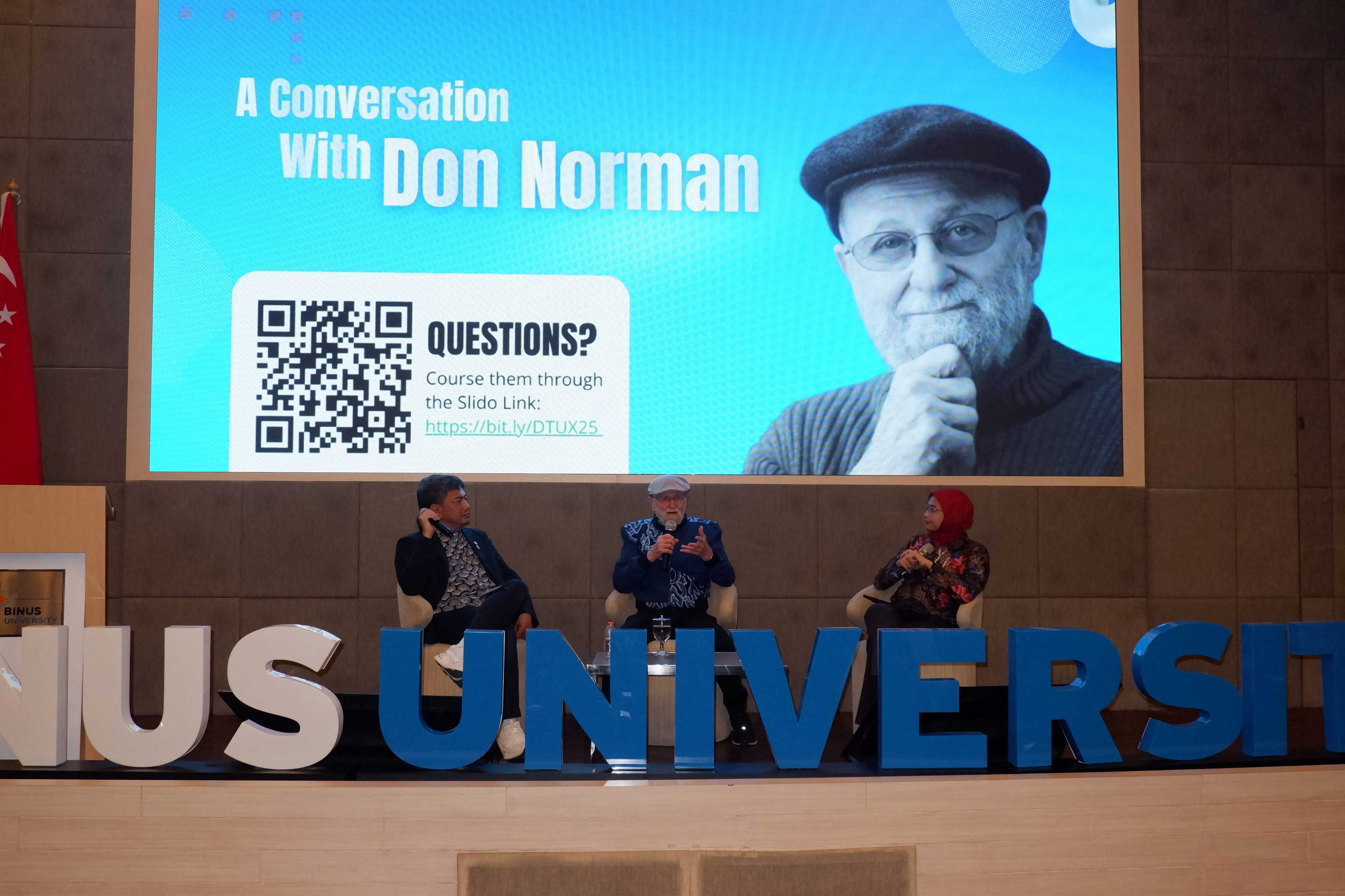 The summit featured Prof. Don Norman, widely recognized as the father of UX, who is known for his influential thinking on user-centered design. His contribution emphasized the importance of understanding users in order to create meaningful and effective innovations. Prof. Firdaus Alamsjah, Director of CREATES, also participated as a panelist, sharing insights on The 7C Factors in Implementing Design Thinking and how these factors support successful innovation in organizations.