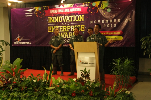 Untuk menciptakan budaya inovasi tersebut, BINA NUSANTARA telah menyelenggarakan acara Innovation and Enterprise Award 2013. Acara Grand Final dan Awarding ini telah diadakan di Hall lantai 8, Kampus Anggrek pada Selasa (26/11)