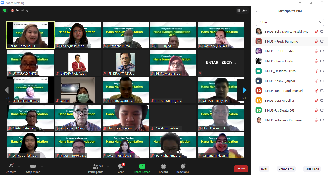 Seremoni Pemberian Beasiswa dari HANA HANUM FOUNDATION ( HANA BANK) 2021