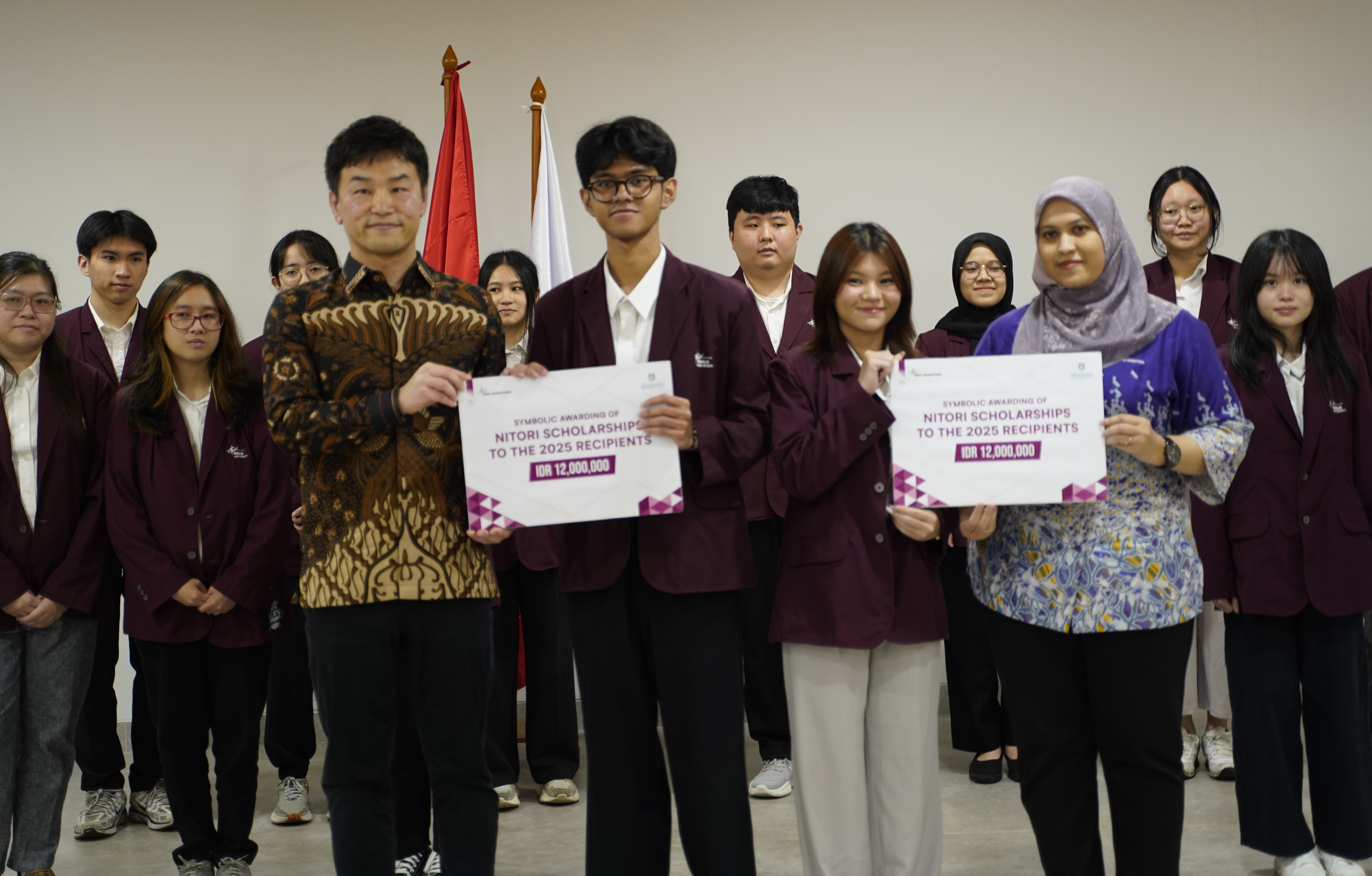 Komitmen bersama ini diresmikan dalam Upacara Penyerahan Beasiswa yang berlangsung khidmat pada tanggal 21 November 2025 di Ruang Aula 800 Kampus BINUS Anggrek. Acara ini menandai babak baru dalam dukungan BINUS dan NITORI untuk mencetak generasi unggul.