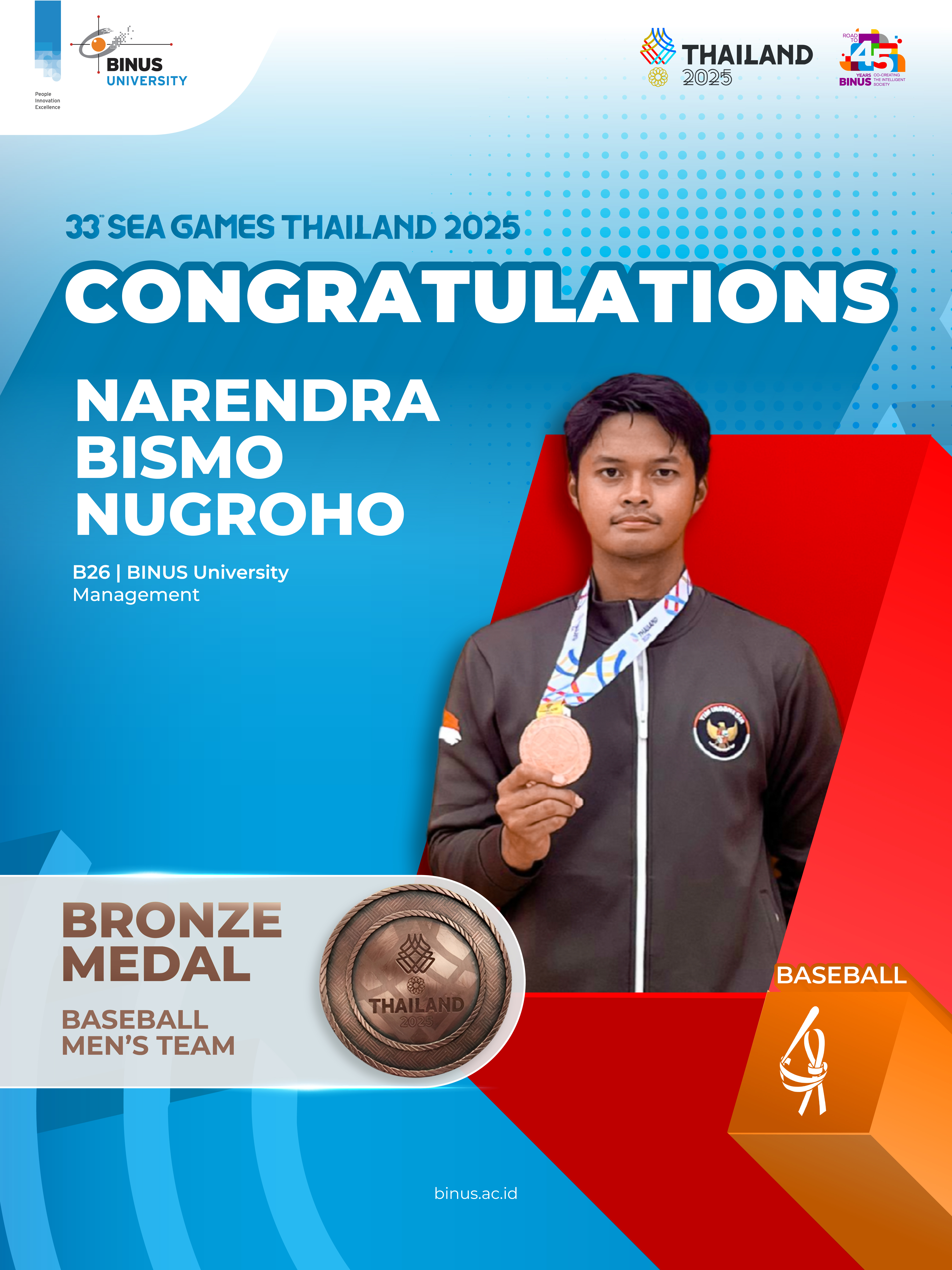 - Narendra Bismo Nugroho (B26, Management) – Baseball (Bronze Medal)