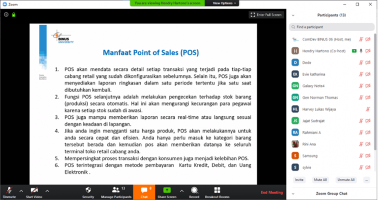 Pembukuan dasar merupakan ilmu penting bagi pelaku Usaha Mikro, Kecil, dan Menengah. Atas dasar tersebut, Comdev Binus memberikan Kelas Pembukuan Dasar secara daring dengan pemateri Dr. Ismiriati Nasip, Dr. Hendry Hartono, Dr. Meiryani, Bambang Leo Handoko, dan Edwin Hendra.