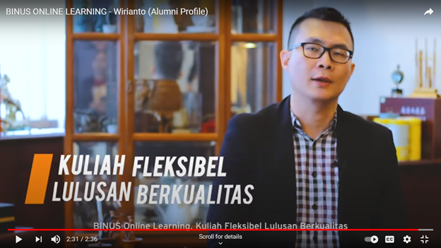 Sistem belajar online yang fleksibel memungkinkan para BINUSIAN menyesuaikan jam belajar dengan jam kerja secara seimbang. Metode pembelajaran ini menurut Wirianto adalah metode yang paling ia butuhkan.